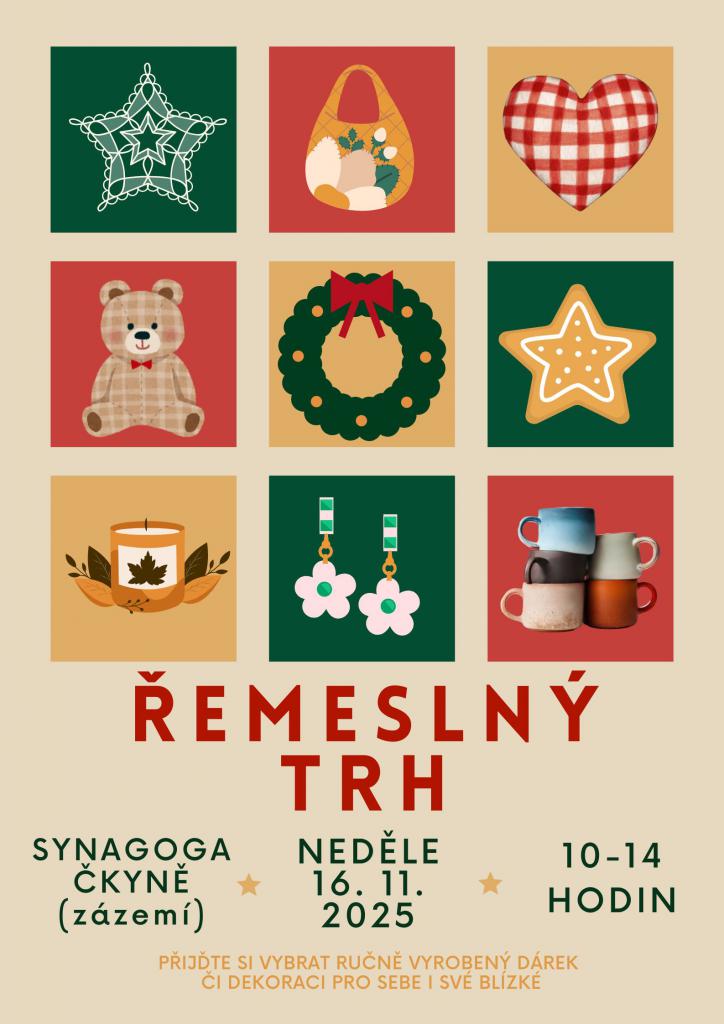 NEDĚLE 16. LISTOPADU OD 10:00 DO 14:00 - ŘEMESLNÝ TRH V ZÁZEMÍ SYNAGOGY.
