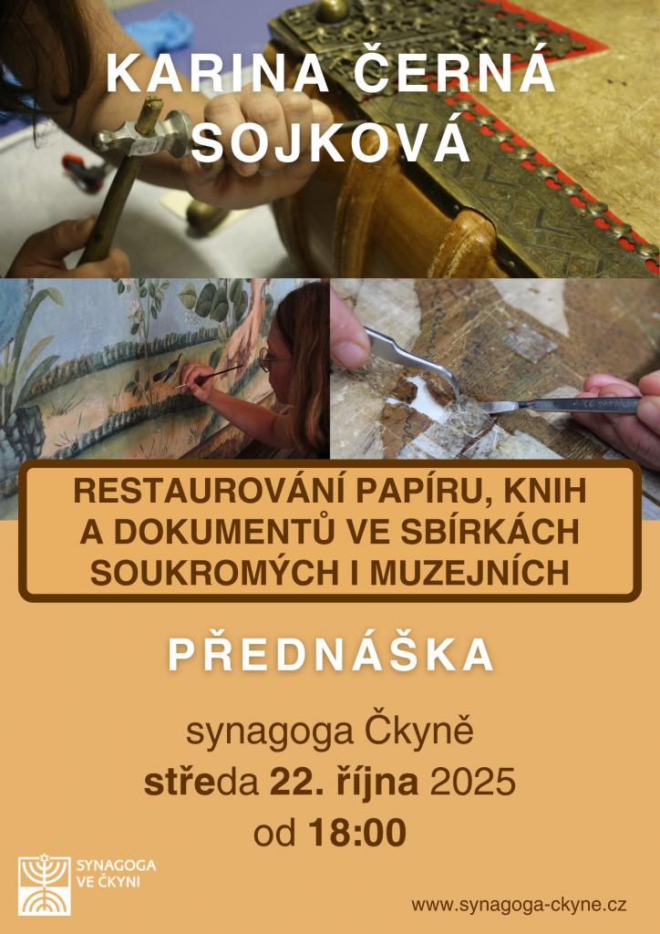 Středa 22. října od 18:00 - RESTAUROVÁNÍ PAPÍRU, KNIH A DOKUMENTŮ VE SBÍRKÁCH SOUKROMÝCH I MUZEJNÍCH - přednáška restaurátorky a konzervátorky KARINY ČERNÉ SOJKOVÉ