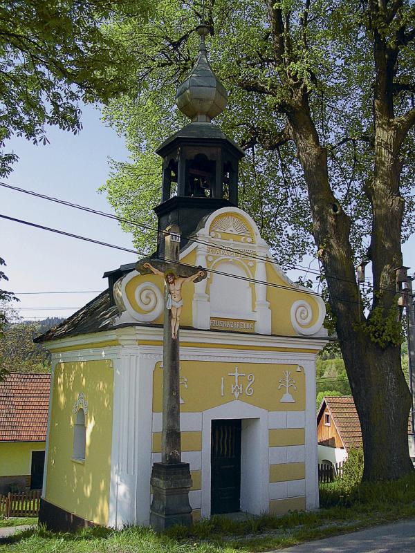 Bursa jako fenoménVesnickou chalupu stavěl většinou každý chalupník sám nebo s pomocí sousedů. Počátkem 19. století se v šumavském podhůří nově objevují jména stavitelů jako je Josef Rys, Matěj Turek nebo Josef Moser. Nejznámějším pošumavským stavitelem, zedníkem a štukatérem je Jakub Bursa, jehož nejlepší stavby jsou datovány do 40. a 50. let 19. století. Bursovy rozvinuté štukové profily vznikaly v době, kdy byl v módě stavební styl, tak trochu nesprávně nazývaný „selským barokem". Mezi charakteristické znaky Bursovy tvorby patří baňatý sloupek, nad pilastry polokruhový tympanon nebo znázornění božího oka ve špičce štítu. Do výzdoby štítu zavedl v Pošumaví dosud nevídaný prvek psaného textu, ve kterém neopomněl zmínit rok výstavby či se podepsat. Na funkci stavby upozorňoval štukovým znázorněním třeba kovářského nářadí nebo hospodských půllitrů a štamprlat. S jeho pracemi se můžeme setkat v Jiřeticích, Předslavicích, Libotyni, Dvorech i dalších vsích.